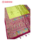 This Tissue Pashmina Silk Saree is crafted using a blend of fine silk yarns and delicate tissue weaving techniques that create its signature luminous finish. Skilled artisans weave intricate traditional motifs inspired by royal Indian heritage, temples, nature, and classical art forms.